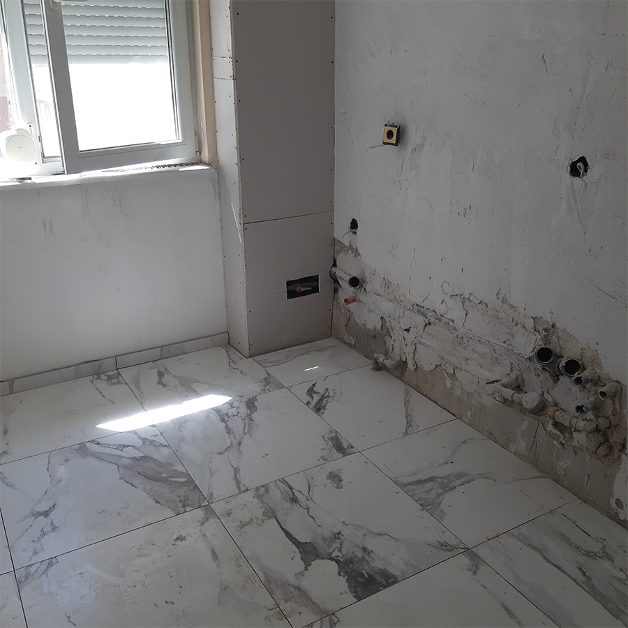 Проектираме ВиК и електроинсталациите в помещението. Подготвяме повърхностите, нивелираме, третитраме с хидроизолации и др. Изграждаме вътрешни конструкции от гипсокартон ако е нужно. Полагаме нужните мазилки, фаянс, гранитогрес и монтираме душ кабини, вани, джакузита, тоалетни чинии, писоари, бидета, мивки, смесители, душ системи, осветителни тела и огледала