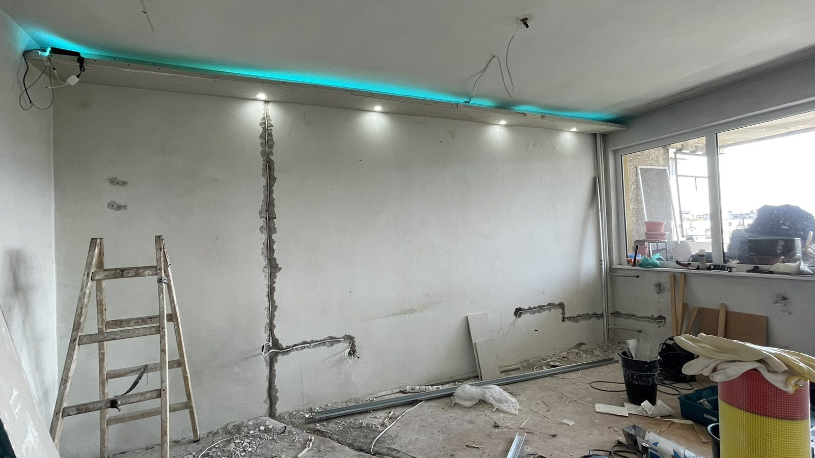 Проектираме и изграждаме тавани и стени от гипсокартон с двойна или единична скара, вграждане на скрити осветления и монтаж на токоизправители, куфари и фигури. Нивелиране на помещението, направа на скара и гипсокартон, шпакловане и боядисване